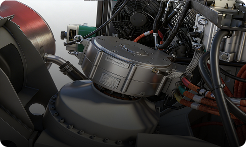 The original superstructure, powered by the engine located below the vehicle, is now powered by a power battery. The original hydraulic rotary motor in the superstructure is replaced with an electric motor. At the same time, an energy recovery function is added to automatically and intelligently start and stop the engine during braking and efficiently generate electricity to charge the power battery.